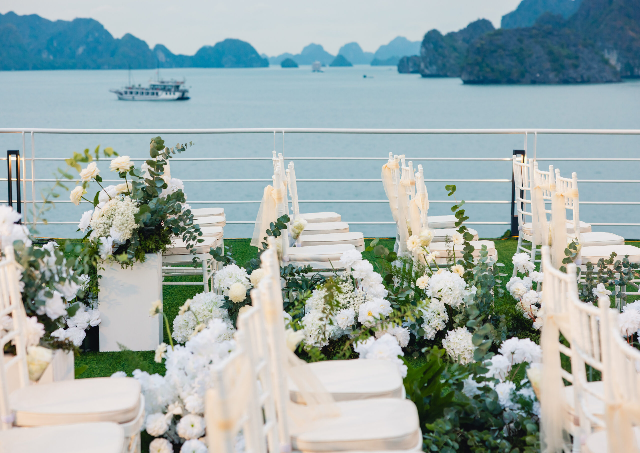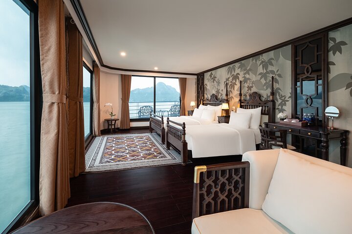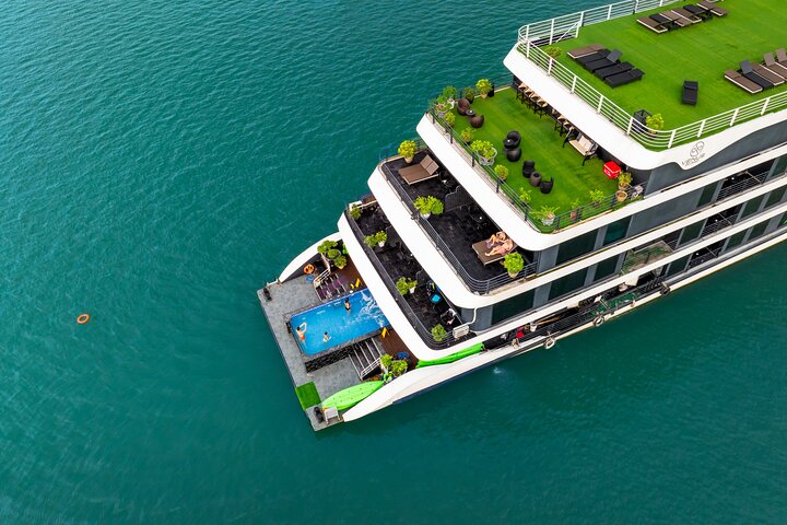 12:00 – 14:00 Moving from Tuan Chau International port to Venus Cruises on tender/ Cano.  After boarding, Cruise Manager will give a brief about safety regulations and tours. Lunch will be served while the boat is sailing deeper to Lan Ha Bay. Room key can be handle to guests before, during or after the lunch finishes.