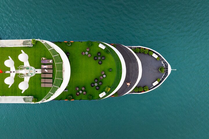 15:00 – 16:30 Cruises anchor at Dark & Bright Cave area and start the first activity of the trip – visiting Cave on Rowing bamboo Boat.